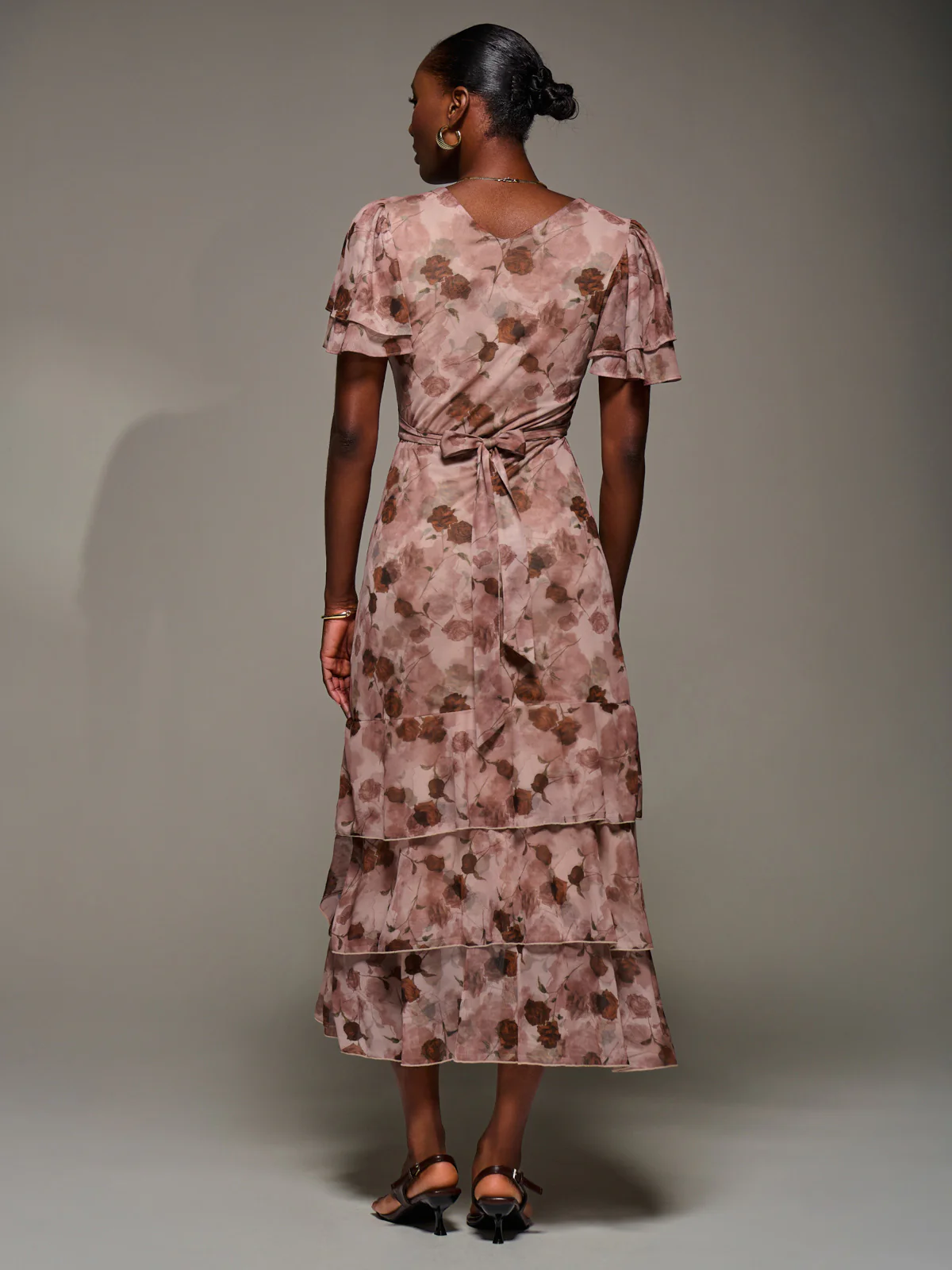 Angel Sleeve Ruffle Hem Mesh Midaxi Dress, Pink Floral