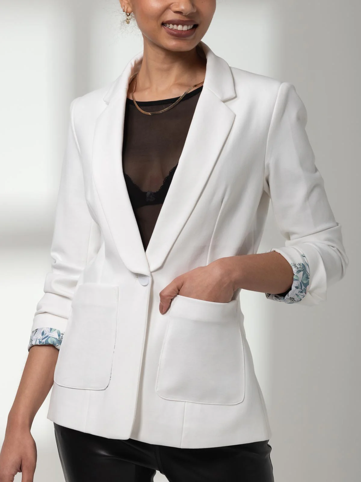 Designed for the fashionable worker the Baylin tailored blazer combines style and professionalism. Made from premium soft to the touch, non-static woven Rayon material. Easy to wear day to day and guaranteed to be a standout in your wardrobe come rain or shine. The inner lining boasts a gorgeous floral print that you can show off when open or have the sleeves rolled up for a chic look.