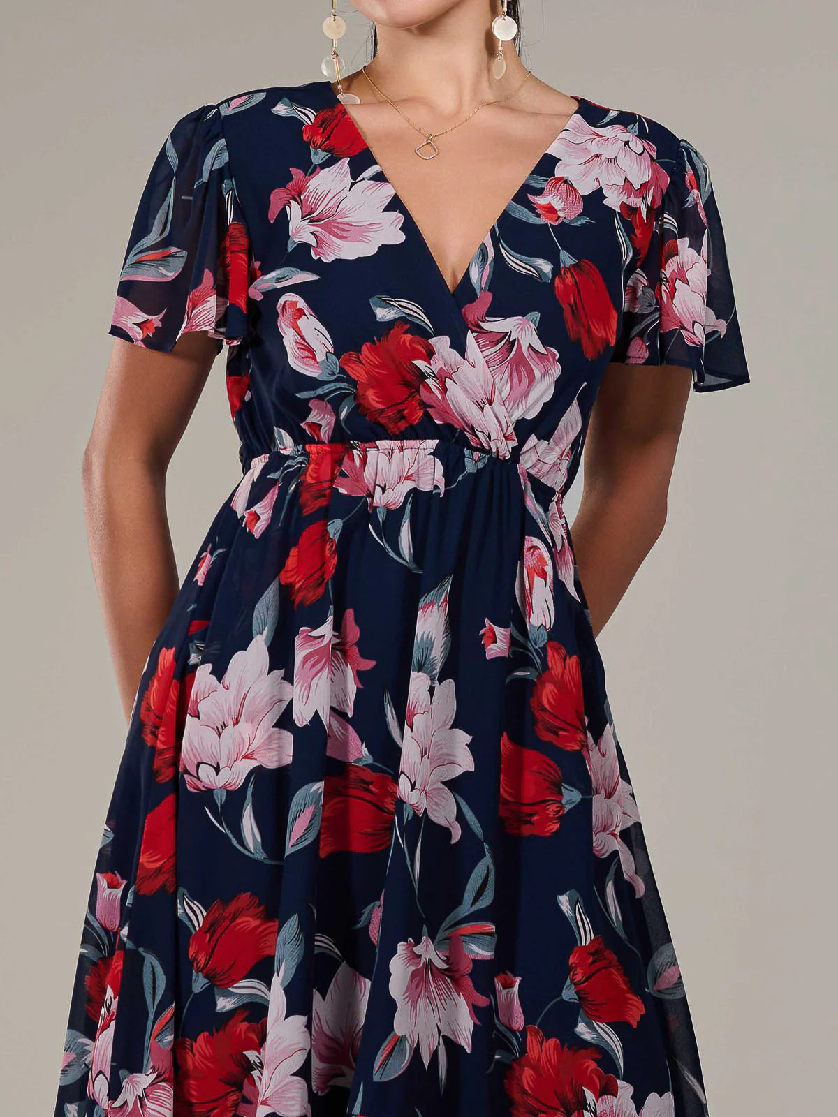 Balance feminine charm and everyday practicality with the Petite High-Low Midaxi Dress by Jolie Moi. Designed specifically for a petite frame, this dress is made from lightweight textured chiffon and features a flattering high-low maxi skirt with a ruffled hem that swishes with every step. The wrap-over V-neckline adds a touch of sophistication, while the fluttery angel sleeves lend a delicate, airy feel. The elasticated waistband and attached waist tie work together to create a stunning silhouette. With added side pockets, a concealed back zipper, and a fully lined construction for a smooth fit, this dress is perfect for everything from garden parties to afternoon tea, making it a go-to piece in your wardrobe.