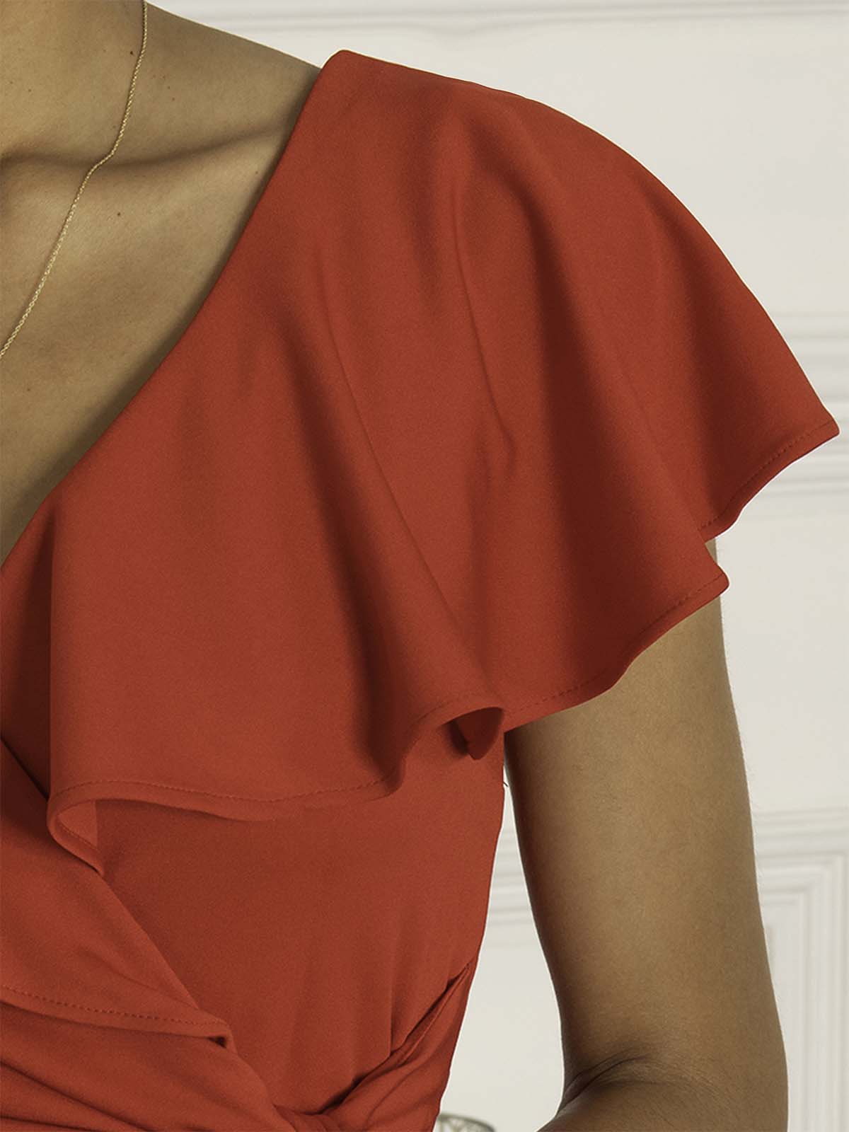 In a flattering fit and flare silhouette, the Priya maxi dress from Jolie Moi has a plain yet elegant design. The dress is made from a stretchy non-static material for all day comfort. Featuring a frilly cap sleeve design that drapes around the v-neckline. Embellished with a tied bow in the front and a high low flared hemline. Perfect for any special occasion whether it be a fancy dinner or a wedding.