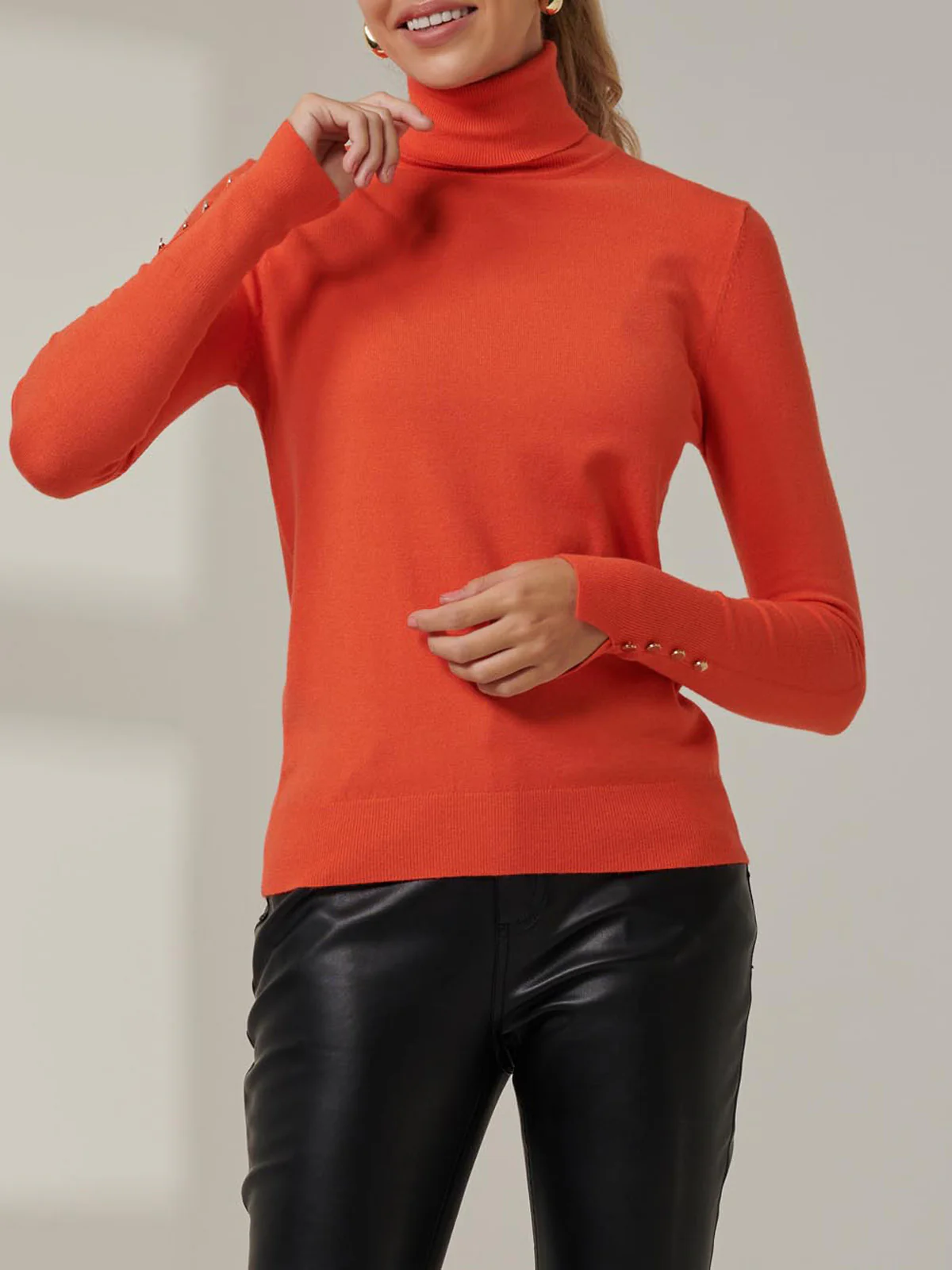 Turtleneck Fine Knit Fittted Jumper, Orange