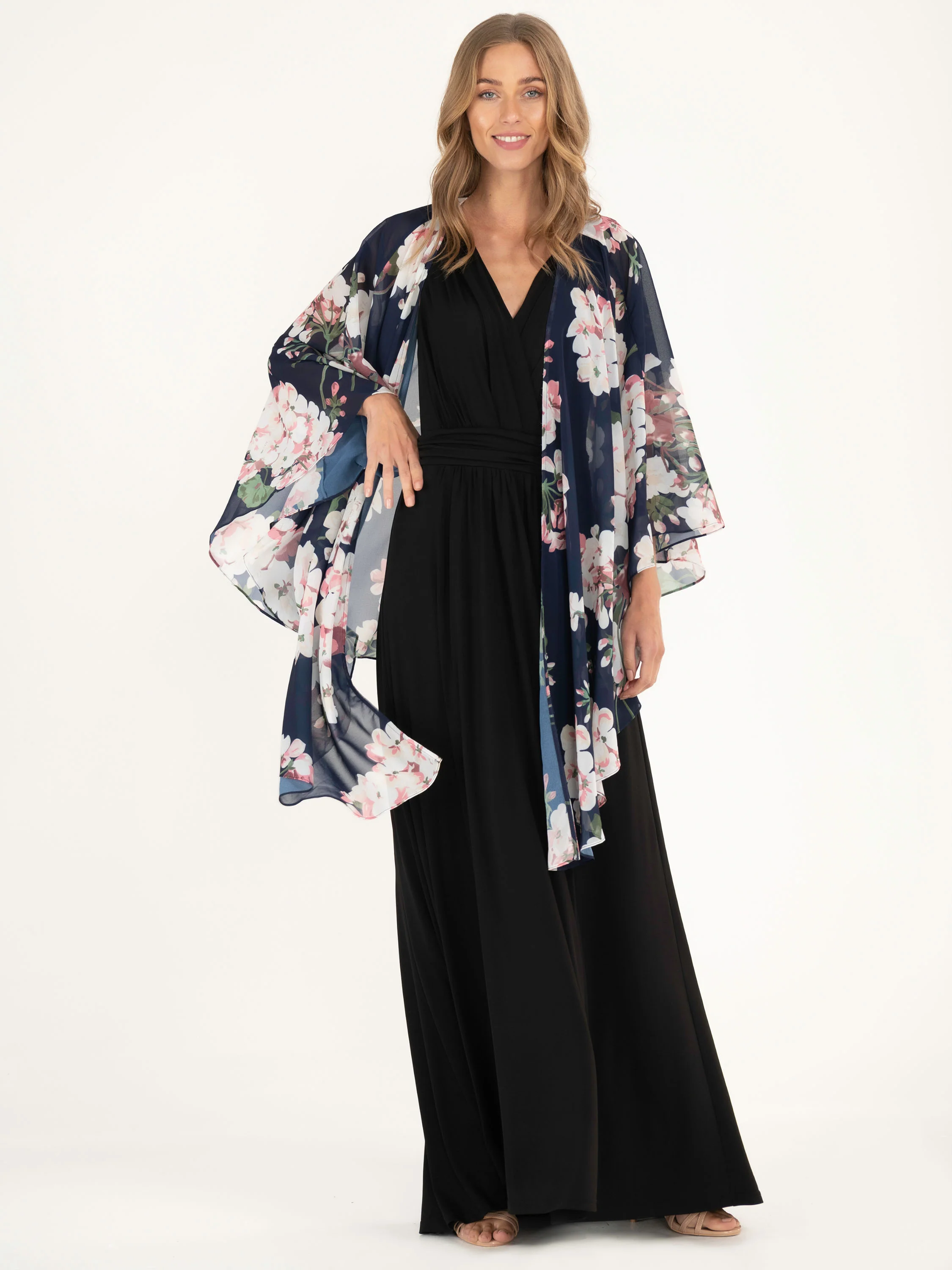 Crafted from an ultra-lightweight chiffon fabric in a range of classic colours, this waterfall design is ideal for layering over evening ensembles;